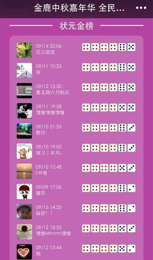 據悉,本次金鹿線上博餅活動由“金鹿美家園”官方微信號發起,目前已經在微信上線10天,通過后臺發現,截止至18號零點,已超過10萬人參與,除了閩南地區的網友外,來自福州、南平,甚至北京的網友也紛紛開博,反響強烈,并在朋友圈刮起一陣“瘋轉”旋風。